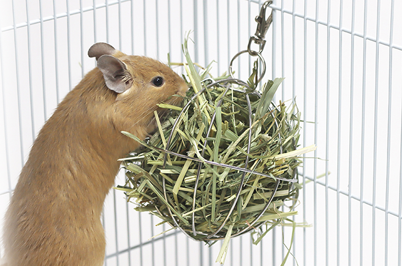 ■ご使用方法 本体(球状のワイヤー)の中に牧草を適量詰めて、口をしっかりと閉じてから、付属のナスカンフックか、付属のチェーンを使用してケージに取り付けて下さい。 本体のフタ部を開き、牧草を適量入れて下さい。 牧草を入れた後、しっかりとフタ部を閉じてから、ケージ内部の適切な位置に取り付けて下さい。 |