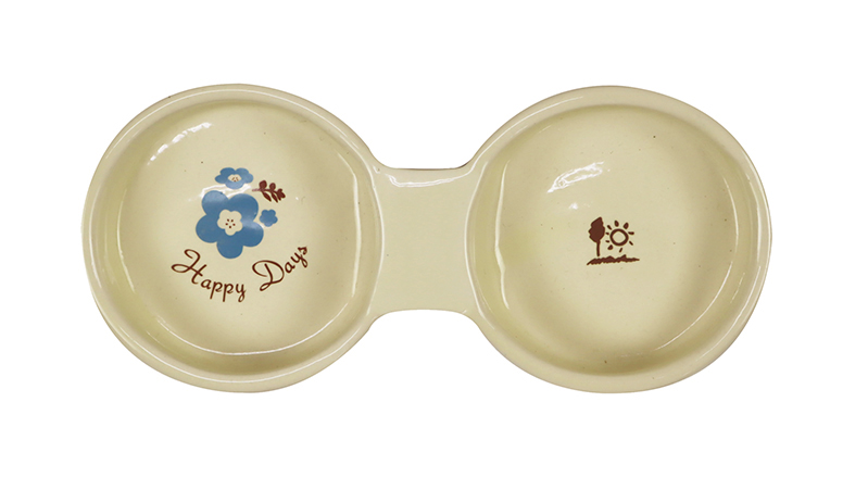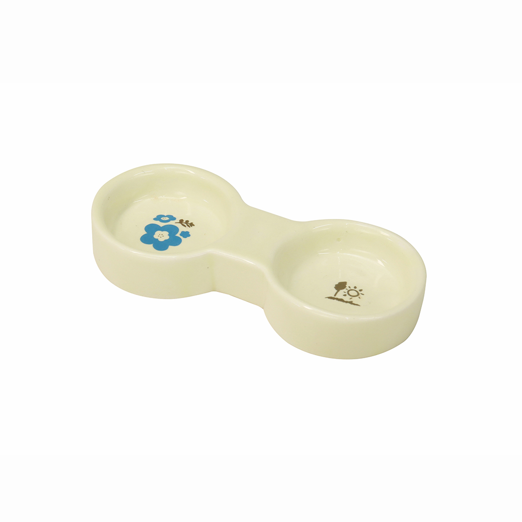 Ceramic dish with a clean look and stable weight. Double-dish design keeps different foods from mixing.