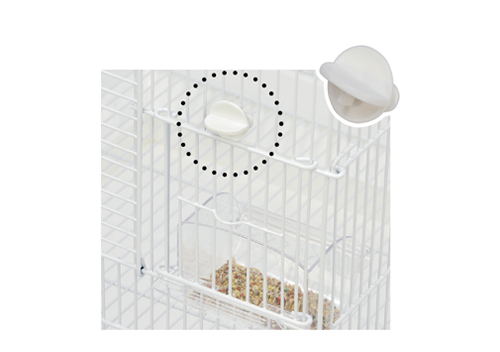 ![]() 正面左右小扉に小鳥オプションパーツ (食器・水浴び器等)設置可能 ※写真は、小鳥の快適バスタイム・小鳥の快適フィーダー設置例 |