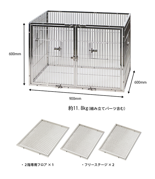 小動物用、大型のステンレス製ケージ「スーパーステンレスケージ9080」用の2階拡張セット。