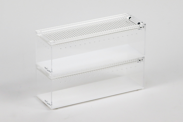 ミニサイズ。定番種のベビー期におすすめのサイズ!省スペースで、クリアに映えるホワイトベースのアクリル製ケース。