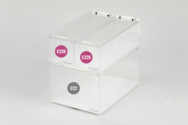 ミニサイズ。定番種のベビー期におすすめのサイズ!省スペースで、クリアに映えるホワイトベースのアクリル製ケース。