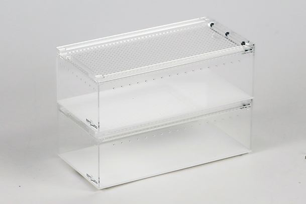 スリムサイズ。定番種のベビー期におすすめのサイズ!省スペースで、クリアに映えるホワイトベースのアクリル製ケース。