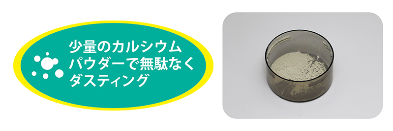 カルシウムパウダーを生き餌の表面に簡単にダスティング!!