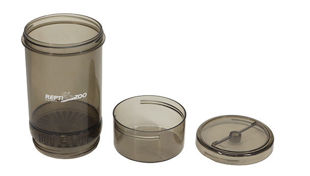 An easy-to-use specialized shaker that ensures efficient, uniform coverage of calcium powder on live food, minimizing waste. An essential tool for reptile care.