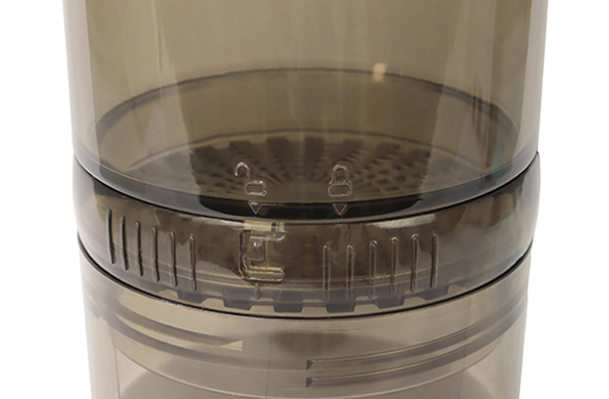 ③余分なパウダーを下部ボックスに落とした後、回転ロックを閉めます。 |