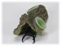 適度な丸みがあり、浅型なので昆虫がつかまりながら、 無理なく食べられる形状です。 下の部分に隙間があり、隠れ家にもなります。 樹脂製なので洗いやすく、本体にカビが 生えてしまうこともありません。 ※ゼリーは2個収められます。